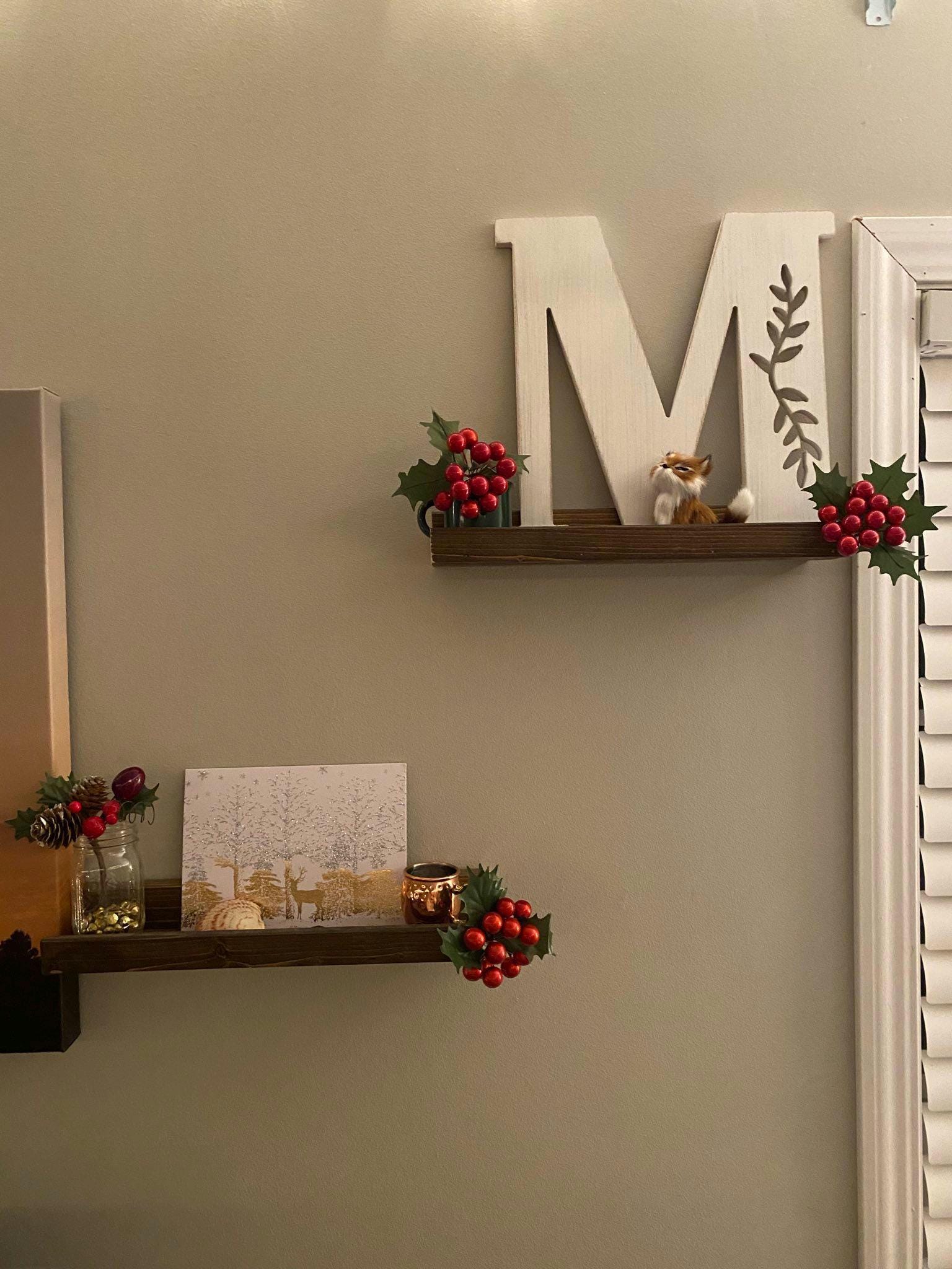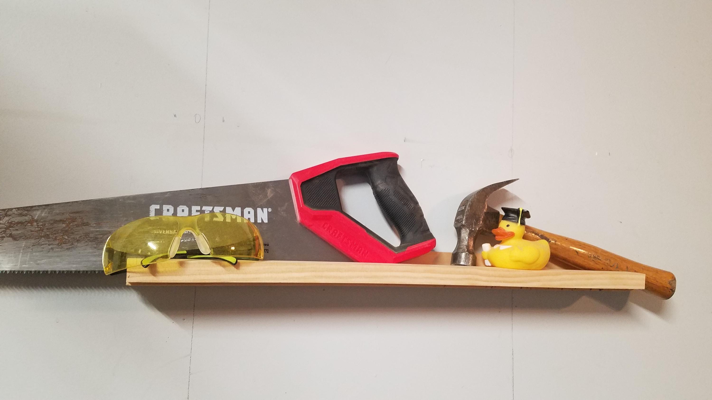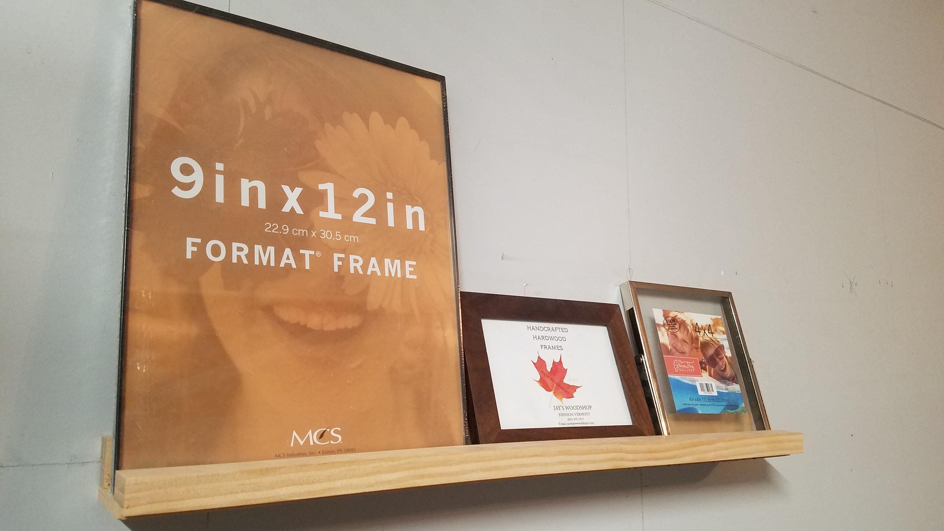 These floating shelves can hold photos, trinkets, spices, or pretty much anything that sits on them. Maybe don't hang cast iron pans from them, but I do make them really strong.