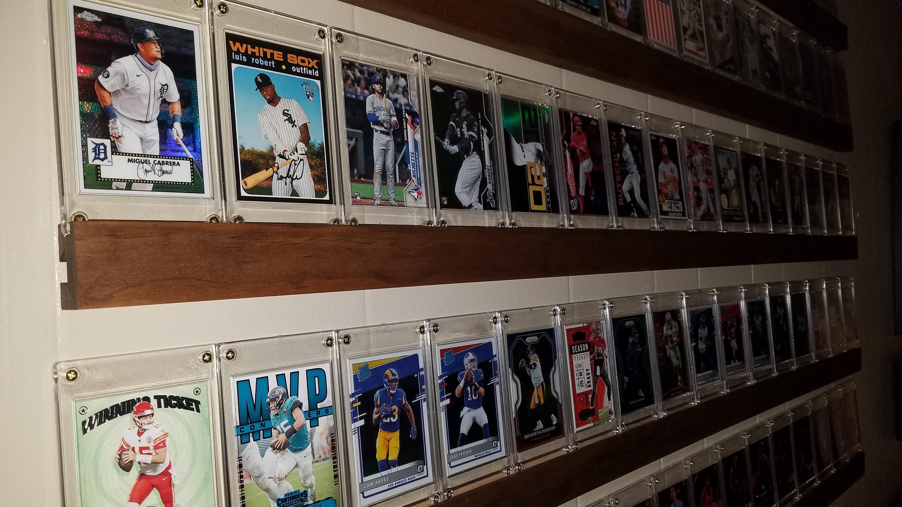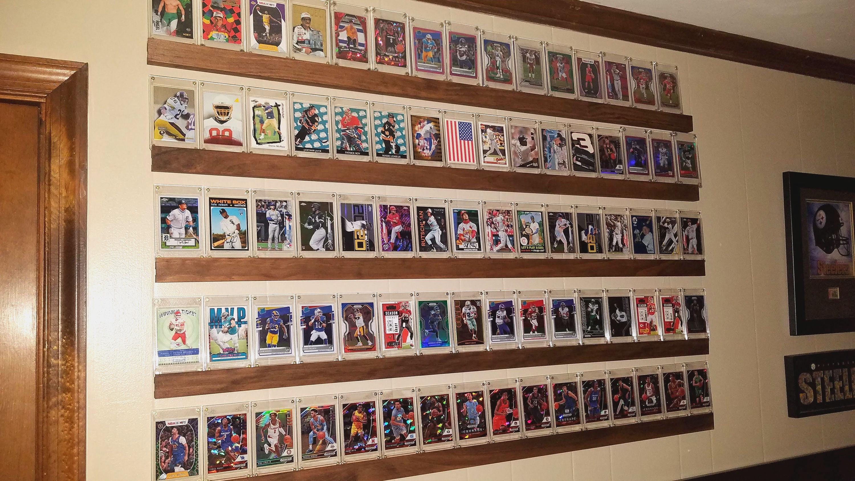 #TradingCardShelves #PSA #CSG #CGC #HGA #RCG #Becketts #slabs #Graded #Donruss #Panini #Prizm #Topps #UpperDeck #Fleer #Leaf #baseball #basketball #football #pokemon #tradingcard #display #nobrackets #custom #Black Walnut #local #handmade #minwax #rustoleum
